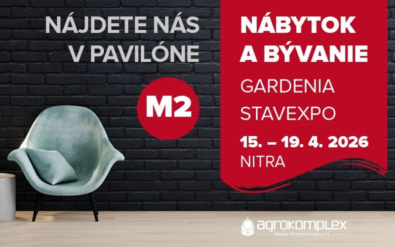 Zveme Vás na náš stánek na veletrhu nábytku a bydlení na výstavišti Agrokomplex Nitra v termínu 15. - 19.4.2026, populární výstavu navštívíme potřetí v historii, naleznete nás v pavilónu M2.