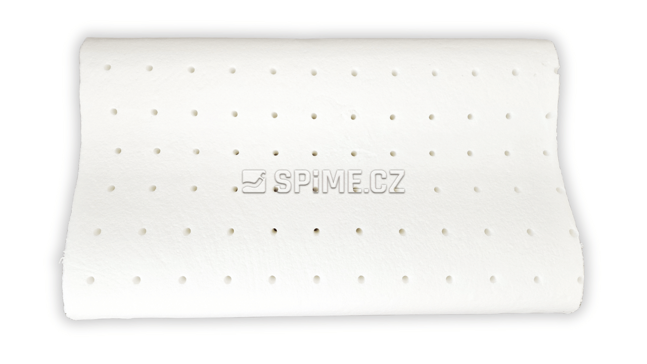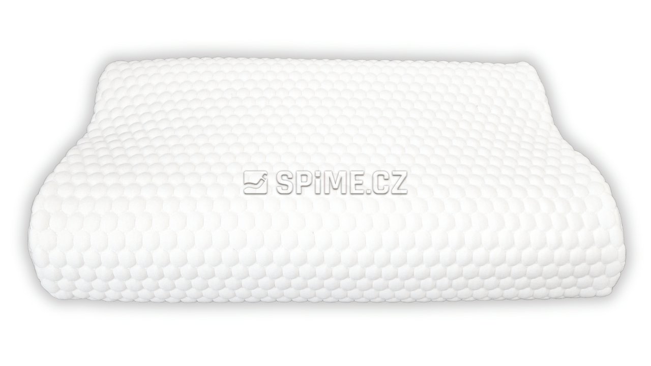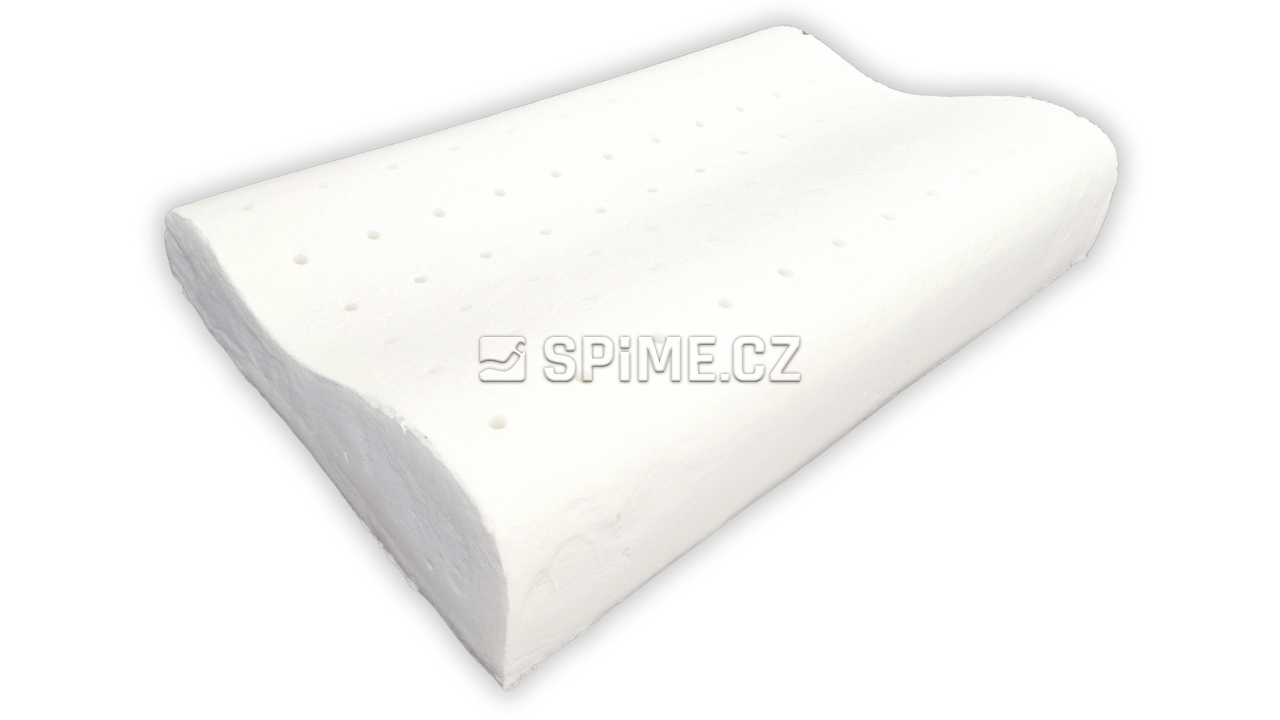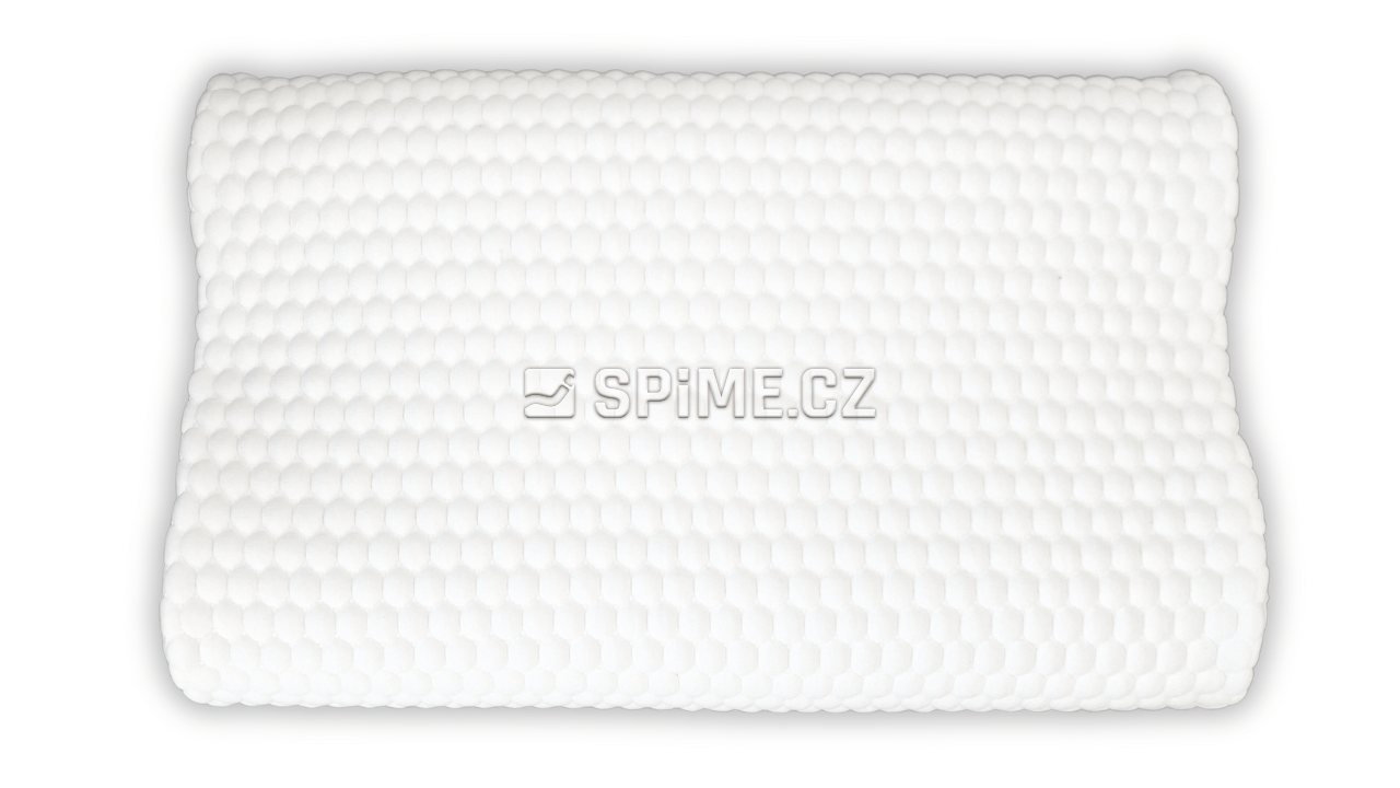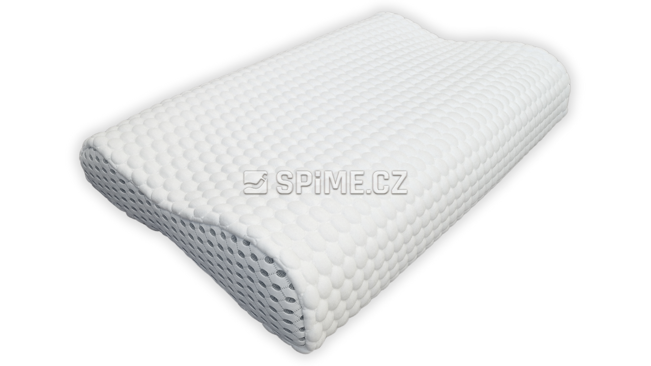 Skvěle tvarovaný anatomický polštář z perforované viscoelastické pěny. Speciální tvar zajišťující optimální oporu krční páteře.