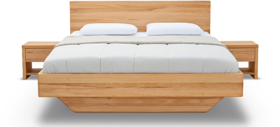 Postel z masivu GRENOBLE dvoulůžko se stolky. Celomasivní levitující dřevěná postel o šíři masivu rámu 4 cm.