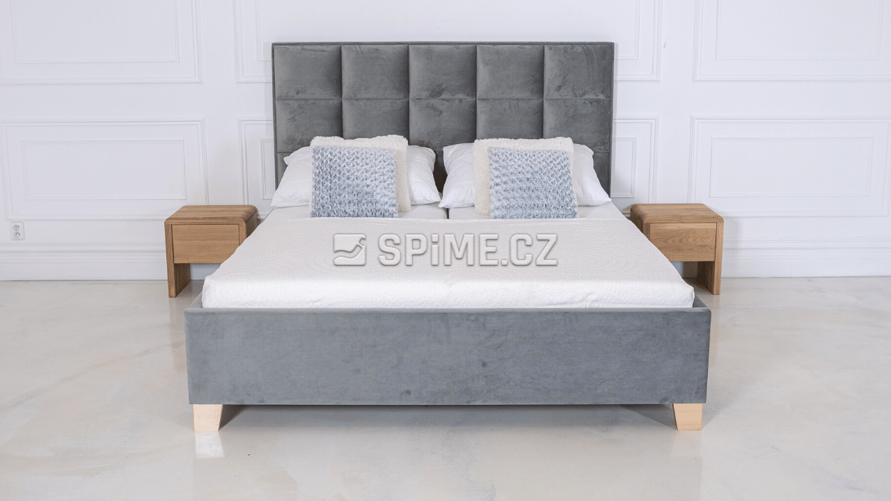 Čalouněná postel s masivním rámem ALTO a masivní bukovou nohou. Kvalitní rám je vyroben z masivního smrku a březové překližky. Čalouněné snadno udržovatelnou látkou Velvet s efektem lesku. Hlavové čelo je v základu výšky 107 cm, za příplatek lze zvolit výšku čela 137 cm. Masivní rám má velkou odolnost, ale poměrně nižší váhu konstrukce, než u standardní často využívané dřevotřísky. Postel je spojena kováním od Hettich a pomocí masivní nohy. Výběr z více druhů barevného provedení čalounění bez příplatků.