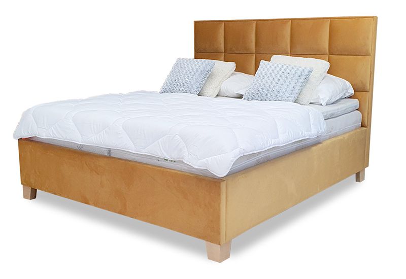 Čalouněná postel s úložným prostorem a masivním rámem MARY a masivní bukovou nohou. Kvalitní rám je vyroben z masivního smrku a březové překližky. Čalouněné snadno udržovatelnou látkou Velvet s efektem lesku. Hlavové čelo je v základu výšky 107 cm, za příplatek lze zvolit výšku čela 127 cm. Masivní rám má velkou odolnost, ale poměrně nižší váhu konstrukce, než u standardní často využívané dřevotřísky. Postel je spojena kováním od Hettich a pomocí masivní nohy. Výběr z více druhů barevného provedení čalounění bez příplatků.