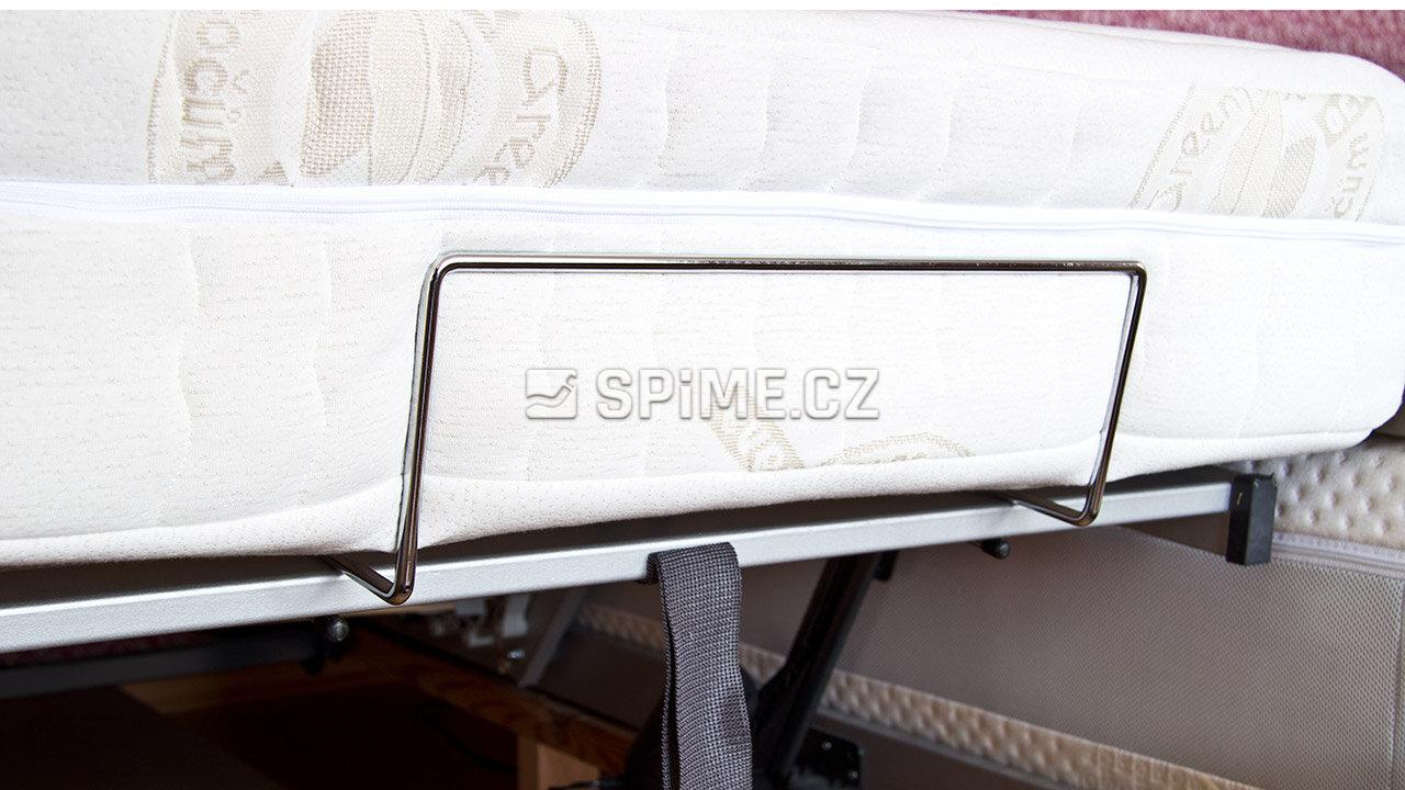 Díky jednoduchému systému zaháknutí za rám roštu a následnému přitlačení matrací na rám postele, může docházet při polohování k jemnému odření povrchu rámu postele, ale vždy z vnitřní nepohledové strany.