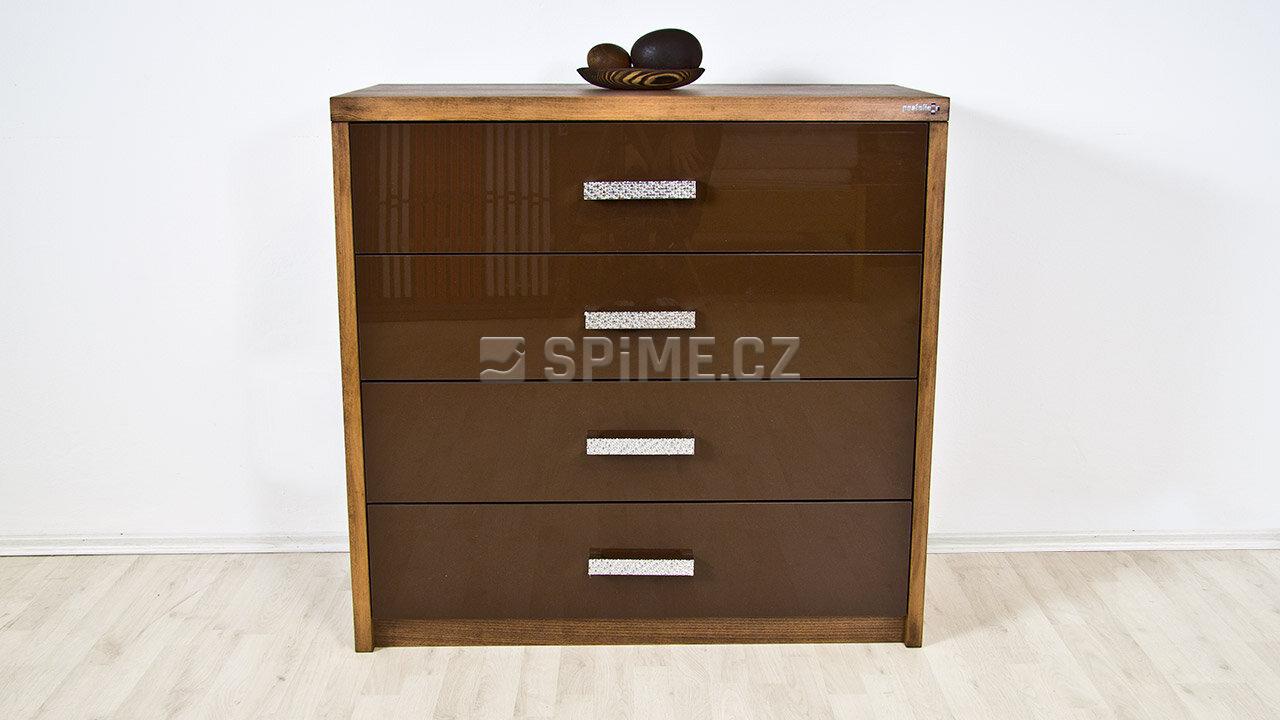 Komoda z masivu PORTO je tvořena kombinací materiálů masivu a masivní dýhy. Čela šuplíků komody jsou z povrchovou úpravou vysoký lesk/lesk, nebo je na výběr masivní čelo šuplíku. Provedení masiv Buk za příplatek Bříza, Dub, Javor, Jasan.  Rozměr komody je šíře/výška 100 cm, hloubka 45 cm. Horní plát je z masivu, boky kombinace masivní dýha a masiv, vnitřní konstrukce šuplíků je z lamina v dekoru vybraného odstínu dřeva, záda komody jsou nepohledová (sololit).