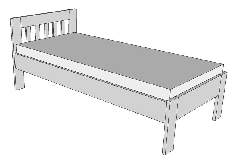 Postel z masivu SANY do L jednolůžko se zvýšenou boční stranou. Čela s výplní šprušlemi. Masivní dřevěná postel o šíři masivu 2,8 cm nebo 4 cm.