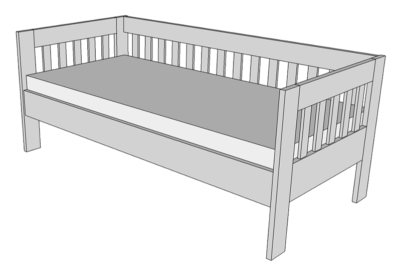 Spojení bočnic a čel je provedeno postelovým kováním od značkového výrobce Hettich. Postel se skládá z bočnic, nožního čela a hlavového čela. Systém závěsného kování umožňuje snadnou montáž i demontáž.