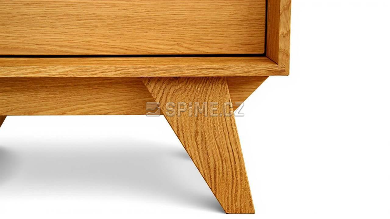Vzdušná konstrukce: Stylové zkosené nohy tvoří stabilní základnu a současně opticky odlehčují celkový tvar komody. Tento designový prvek přidává nábytku na lehkosti a moderním vzhledu, aniž by byla ohrožena jeho stabilita.