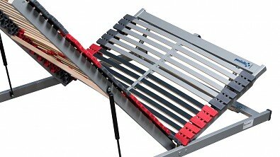 Polohovací rošt s pístovým nožním výklopem. Aktivní dvojitá výkyvná pouzdra.