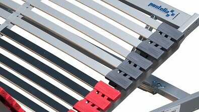 - Díky konstrukci aktivního pouzdra je lamela posazena až nad boční rám roštu, při zatížení se může lamela zapřít o boční rám roštu a tím se celkově zvyšuje odolnost a životnost lamelového roštu.
