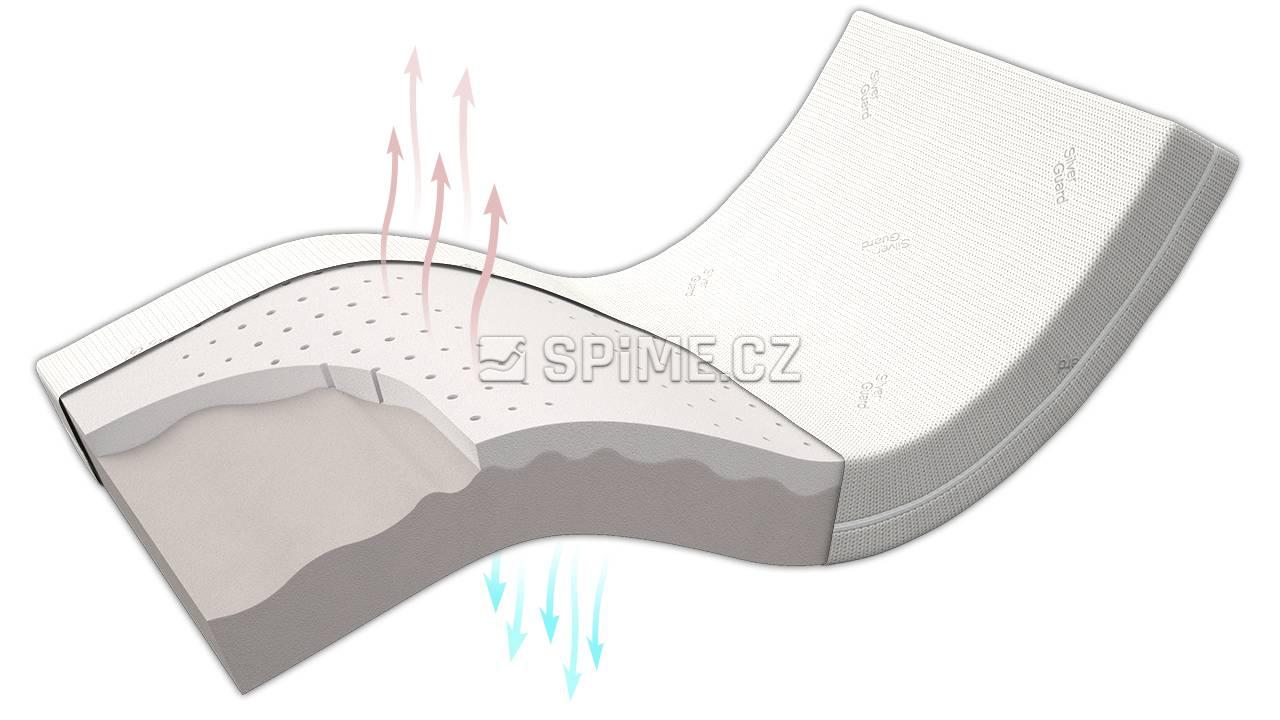 Exkluzivní prodyšná matrace z děrované líné pěny a HD pěny.