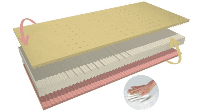 Sedmi-zónová konstrukce má díky výřezům různě tuhé části, pro dokonalejší tvárnost matrace, která dokáže dokonaleji podepřít konturu těla a srovnat páteř do přirozené polohy.