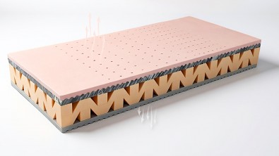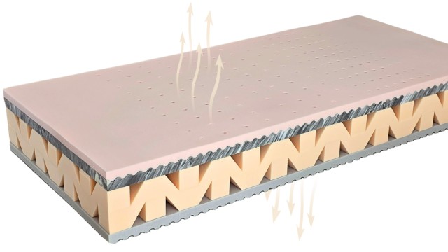 Exkluzivní prodyšná matrace z děrované líné pěny a HD pěny.
