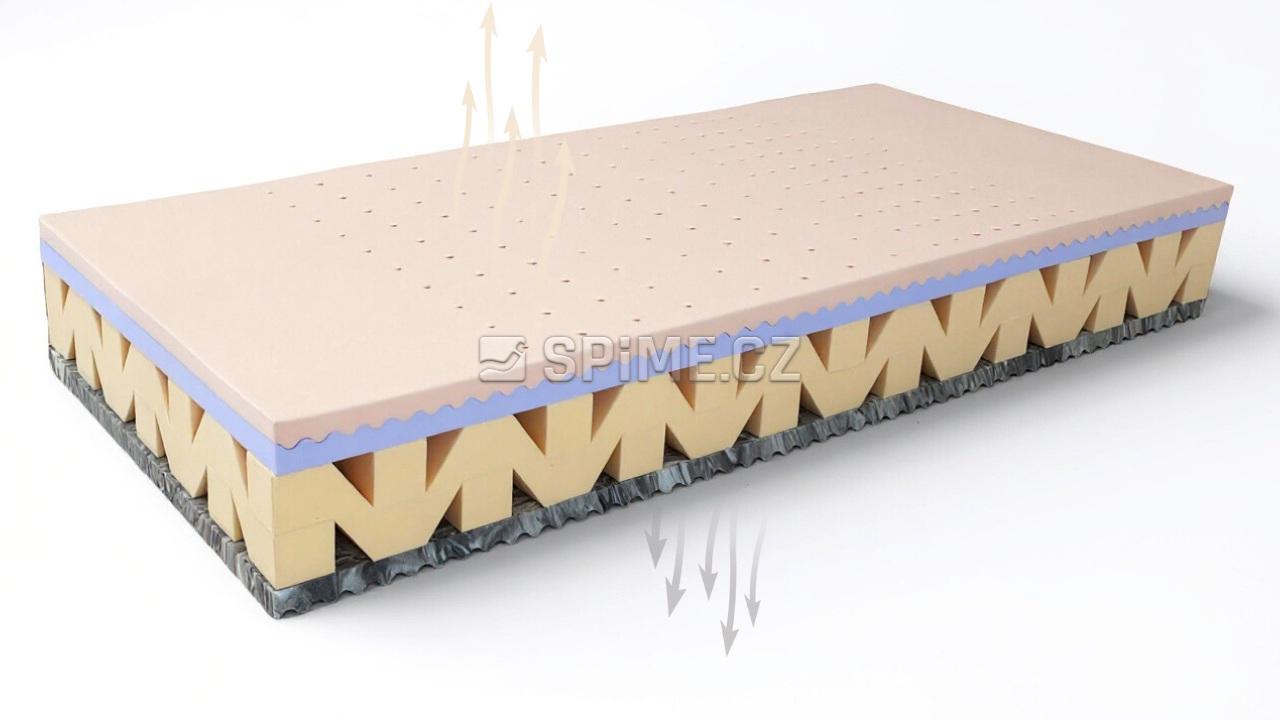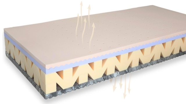 Exkluzivní prodyšná matrace z děrované líné pěny a HD pěny.