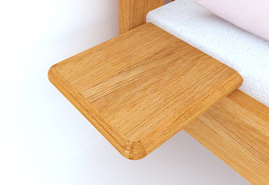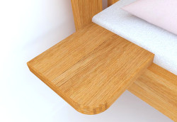 Noční stolek z masivu BONITO je tvořen odkládací plochou a trojúhelníkovou vzpěrou o šíři masivu 3,7 cm / 4 cm. Provedení masiv Buk nebo za příplatek Bříza, Dub, Javor, Jasan. Výška po horní desku stolku je o 3,7 cm / 4 cm výš než bočnice postele. Stolek se upevňuje k posteli z vnitřní stany bočnice. Na přání uděláme stolek v jakémkoliv rozměru. Kalkulaci na jiný rozměr Vám sdělíme obratem.