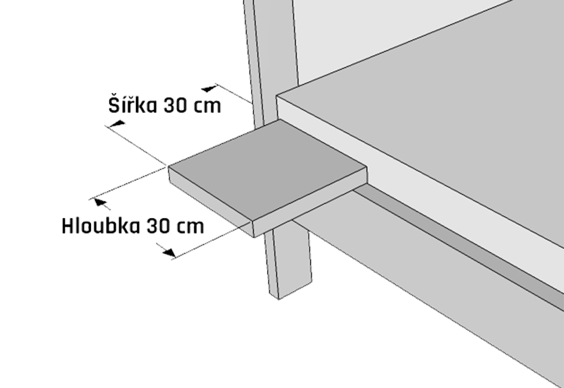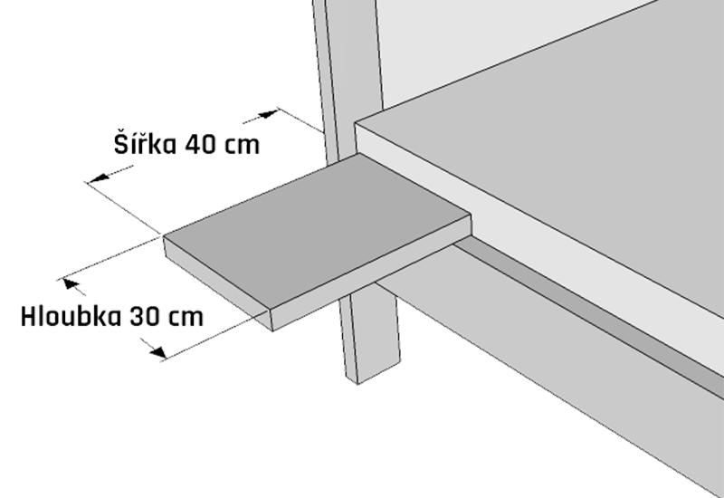 | Výška celkem: | výška bočnice + 3,7 cm / 4 cm |