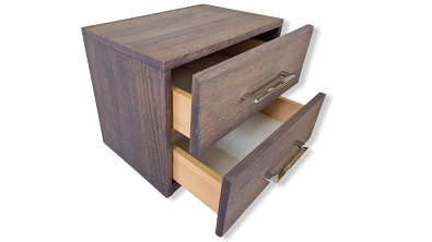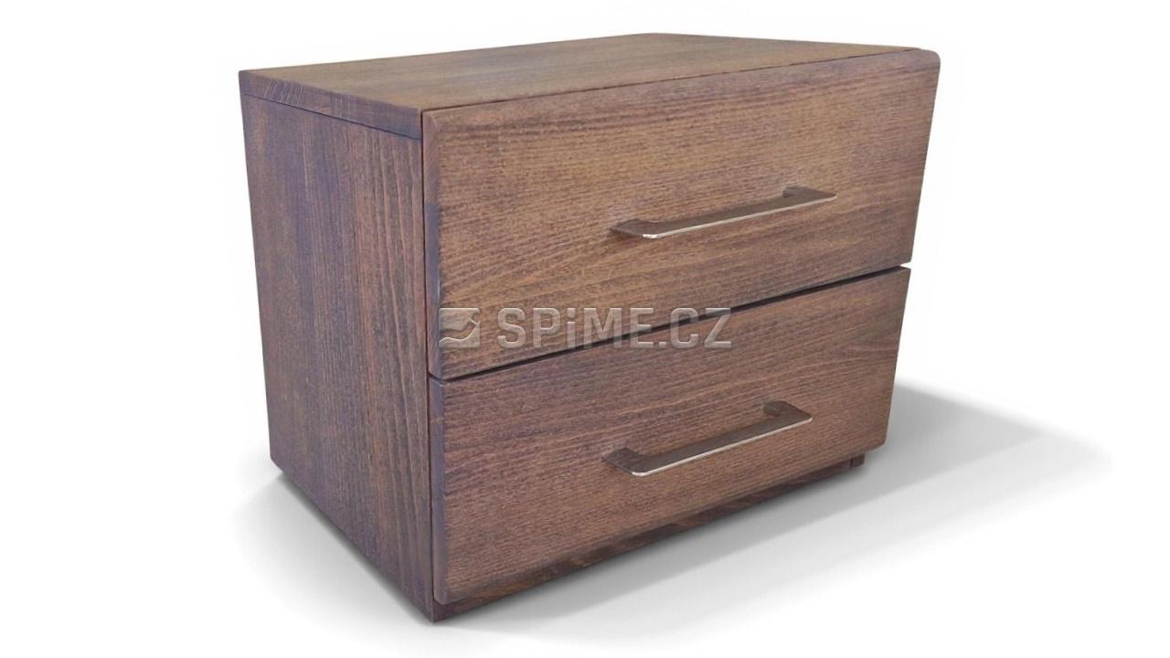 Noční stolek z masivu BERGAMO s 2x šuplíkem. Základní rozměr nočního stolku je šíře 50 cm, hloubka 35 cm, výška 40 cm.jZákladní výsuvné kování je rolničkové, nebo s příplatkem ložiskové výsuvy Quadro®, nebo Quadro Silent®(samodobržďovací). Kování je od Německého výrobce Hettich®. Noční stolek je vyroben z masivu, respektive masivní je horní deska a čílka nočního stolku. Boky stolku jsou z masivní dýhy. Za příplatek pak může být vyroben v celomasivním provedení z materiálů masiv Buk, nebo Dub. Vnitřní konstrukce šuplíků je vždy z lamina, dekor přírodní buk(nebo dub), dno stolku je z bílého sololitu. Zadní část nočního stolku je nepohledová, v zadní části stolku je použit přírodní sololit. Noční stolek lze zvolit s frézovaným úchytem, nebo lze vybrat některé z madel od značky SIRO®.