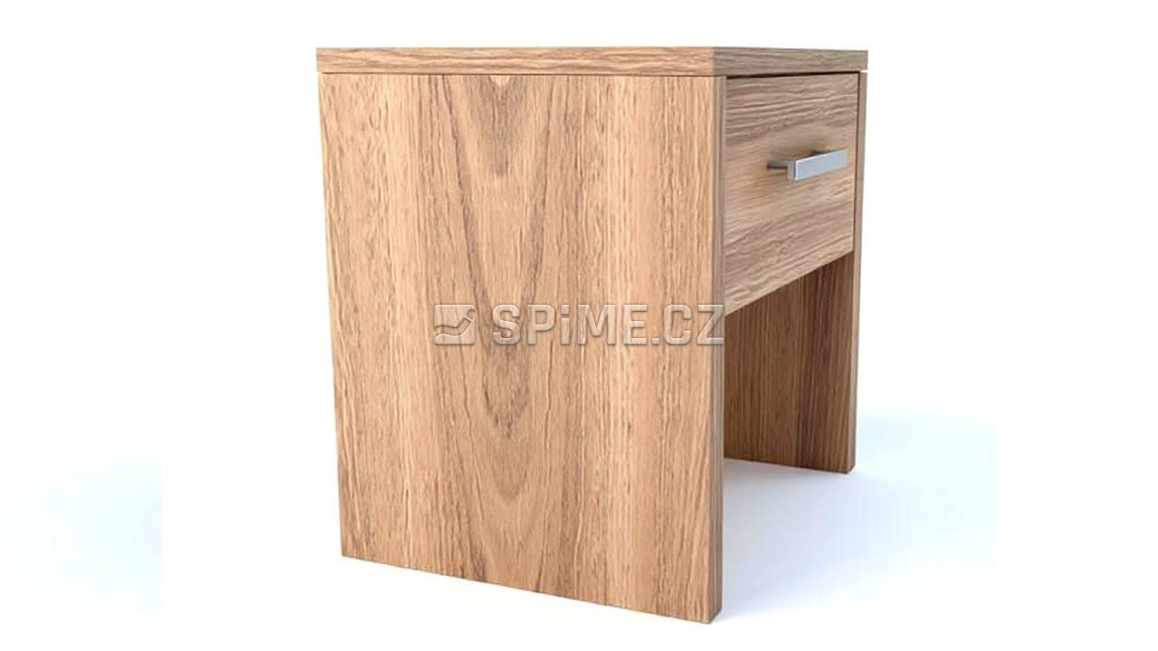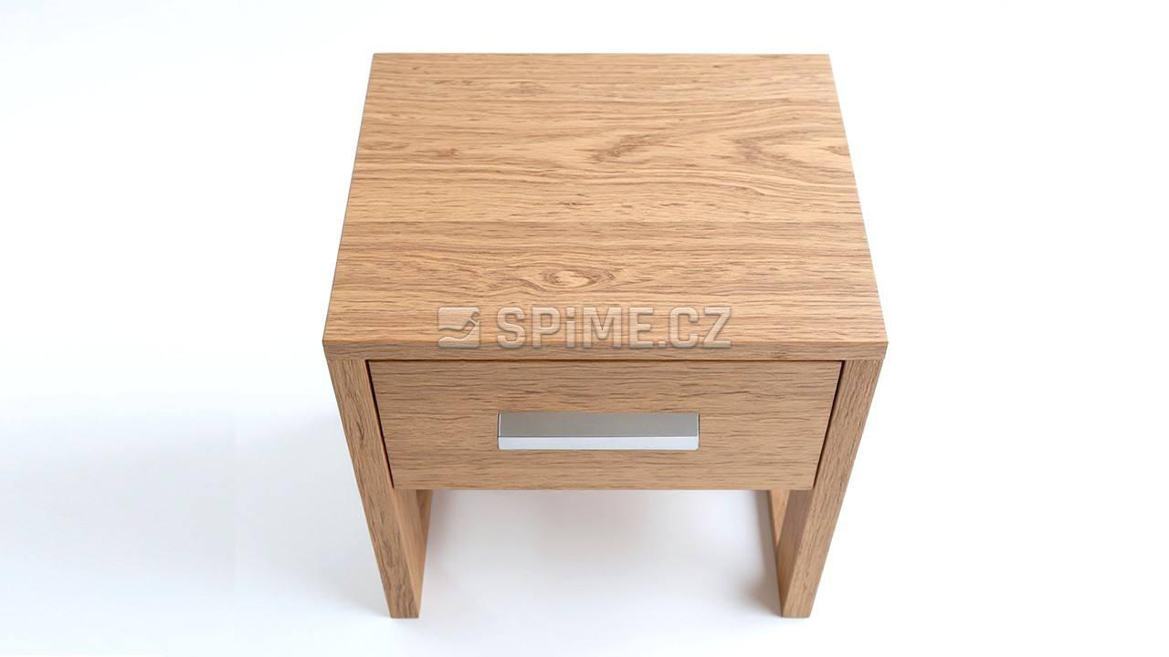 Noční stolek COMODINO je vyrobený z masivní dýhy v kombinaci z masivem. Noční stolek je široký 40 cm a hluboký 35 cm, výška je 45 cm. Výsuvné kování je rolničkové, nebo s příplatkem ložiskové výsuvy Quadro®, nebo Quadro Silent®(samodobržďovací). Kování je od Německého výrobce Hettich®. Noční stolek je vyroben z masivu, respektive masivní je horní deska a čílka nočního stolku. Boky stolku jsou z masivní dýhy. Vnitřní konstrukce šuplíků je z lamina, dekor přírodní buk, dno stolku je z bílého sololitu. Zadní část nočního stolku je nepohledová, v zadní části stolku je použit přírodní sololit. Noční stolek lze zvolit s frézovaným úchytem, nebo lze vybrat některé z madel od značky SIRO®.
