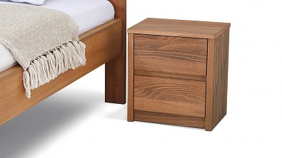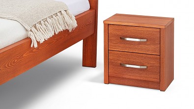 Noční stolek COMODINO DUO je vyrobený z masivní dýhy v kombinaci z masivem. Noční stolek je široký 40 cm a hluboký 35 cm, výška je 45 cm. Výsuvné kování je rolničkové, nebo s příplatkem ložiskové výsuvy Quadro®, nebo Quadro Silent®(samodobržďovací). Kování je od Německého výrobce Hettich®. Noční stolek je vyroben z masivu, respektive masivní je horní deska a čílka nočního stolku. Boky stolku jsou z masivní dýhy. Vnitřní konstrukce šuplíků je z lamina, dekor přírodní buk, dno stolku je z bílého sololitu. Zadní část nočního stolku je nepohledová, v zadní části stolku je použit přírodní sololit. Noční stolek lze zvolit s frézovaným úchytem, nebo lze vybrat některé z madel od značky SIRO®.