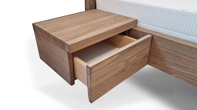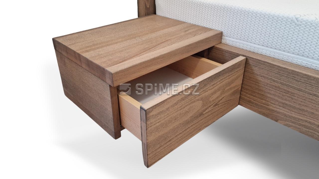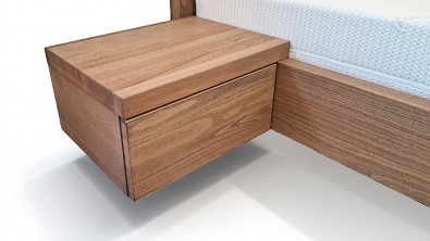 Noční stolek z masivu EMPORE. Závěsný masivní dřevěný stolek se zaoblením o šíři masivu 2 cm. Provedení masiv: