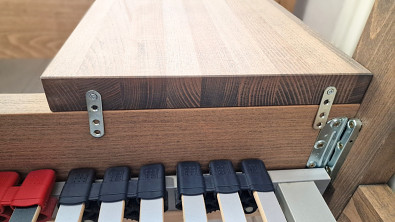 Důležité UPOZORNĚNÍ !!! Vzhledem k vysoké váze stolku je bočnice namáhána, v kombinaci s kováním od HETTICH by mohlo dojít k vyklonění bočnice, proto je nutné u tohoto spoje použít nosné vingle, které budou držet počnici ve správné pozici. Vingle nejsou součástí balení.