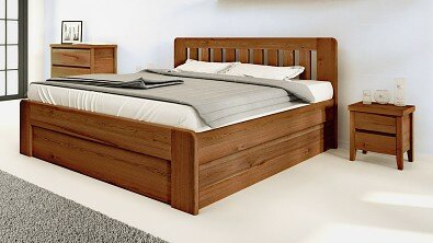 Postel s úložným prostorem IBIZA dvoulůžko. Celomasivní dřevěná postel s úložným prostorem o šíři masivu 4 cm.