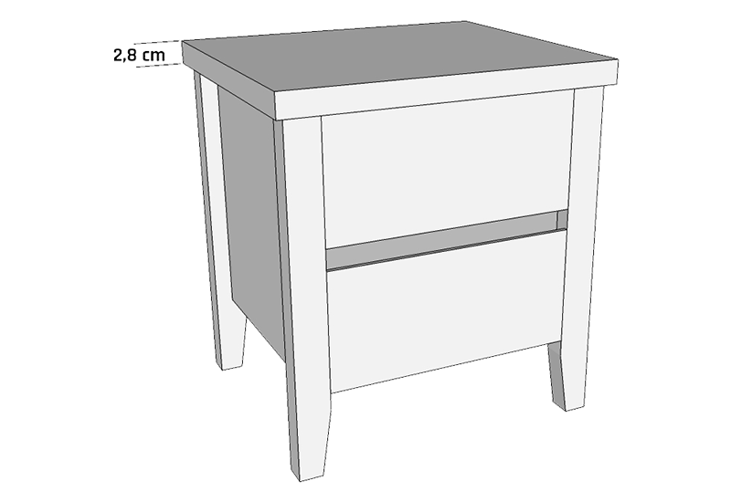 | Šíře masivu: | Horní deka 2,8 cm nebo 4 cm, Čela zásuvek 2 cm |