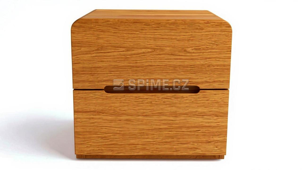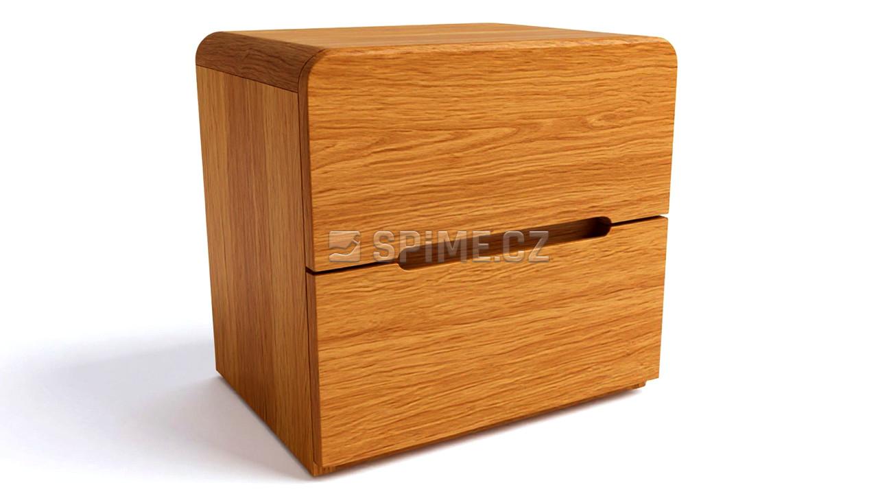 Noční stolek z masivu LAGO, 2x zásuvka. Výsuvné kování je rolničkové, nebo s příplatkem ložiskové výsuvy Quadro®, nebo Quadro Silent®(samodobržďovací). Kování je od Německého výrobce Hettich®. Noční stolek je vyroben z masivu, respektive masivní je horní deska a čílka nočního stolku. Boky stolku jsou z masivní dýhy. Za příplatek pak může být vyroben v celomasivním provedení z materiálů masiv Buk, nebo Dub. Vnitřní konstrukce šuplíků je vždy z lamina, dekor přírodní buk(nebo dub), dno stolku je z bílého sololitu. Zadní část nočního stolku je nepohledová, v zadní části stolku je použit přírodní sololit. Noční stolek lze zvolit s frézovaným úchytem, nebo lze vybrat některé z madel od značky SIRO®.