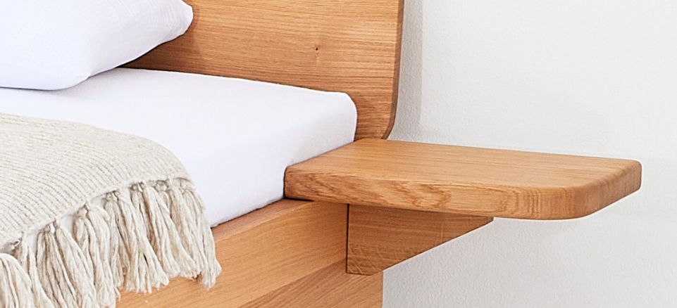 Noční stolek z masivu EMPORE. Závěsný masivní dřevěný stolek se zaoblením o šíři masivu 2 cm. Provedení masiv: