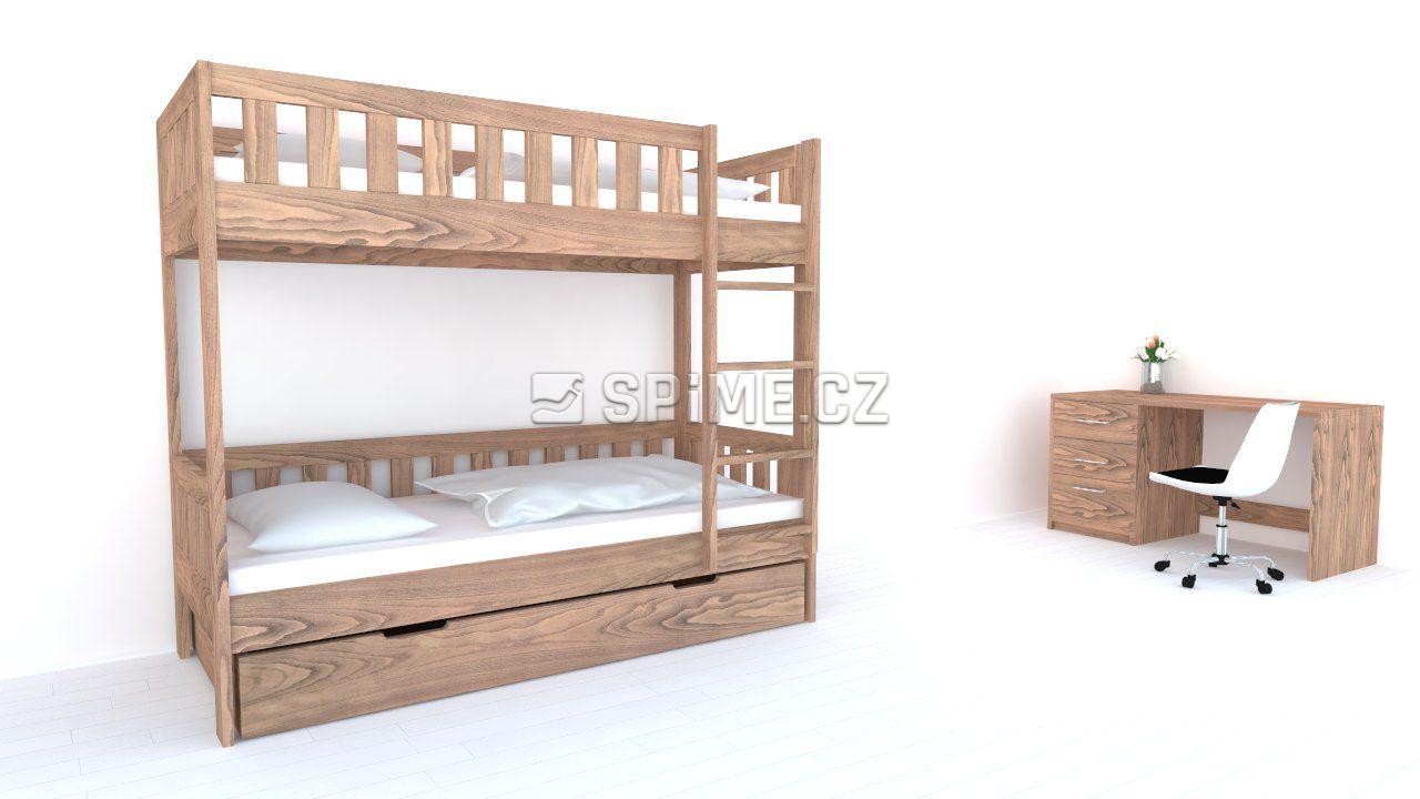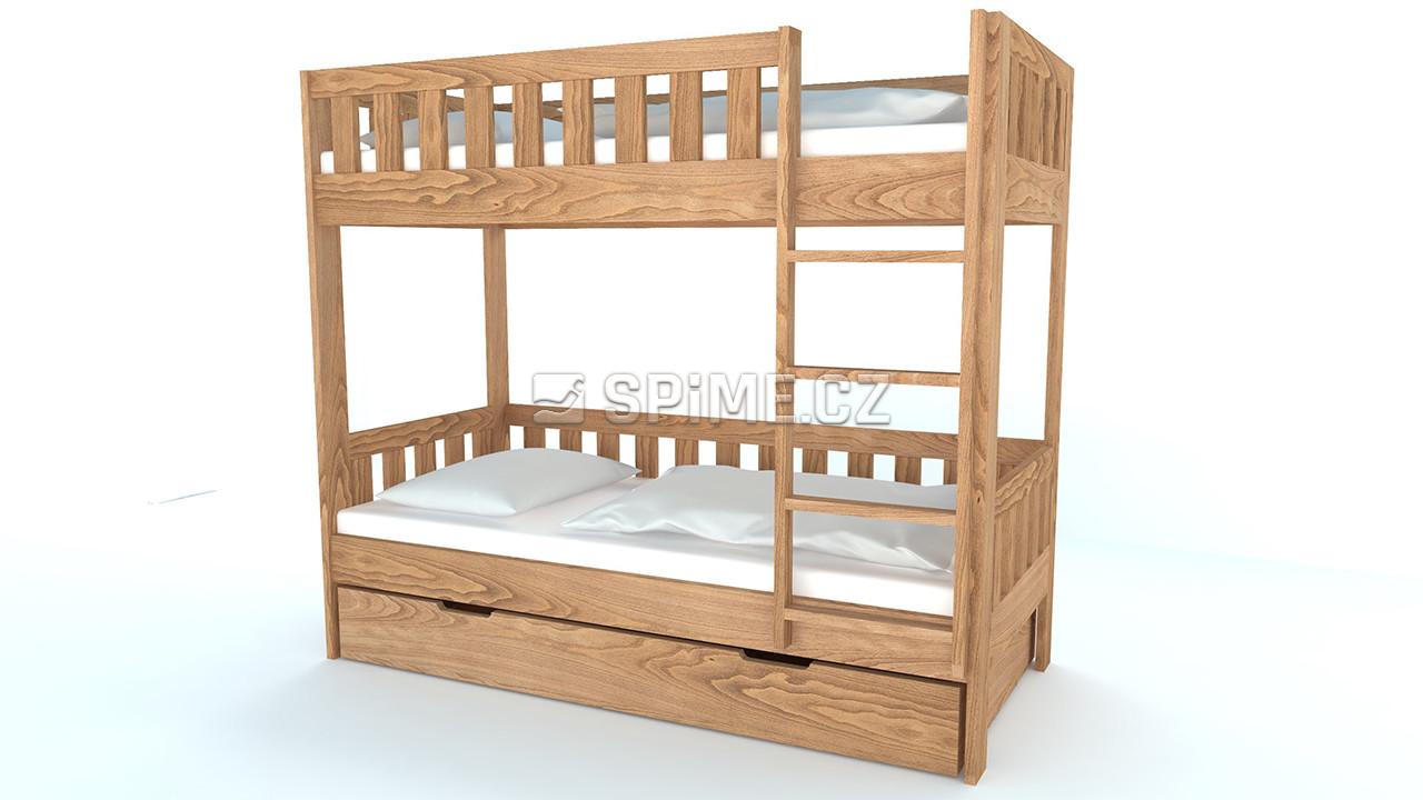 Patrová postel z masivu Kids. Celomasivní dřevěná patrová postel o šíři masivu 2,8 nebo 4 cm.