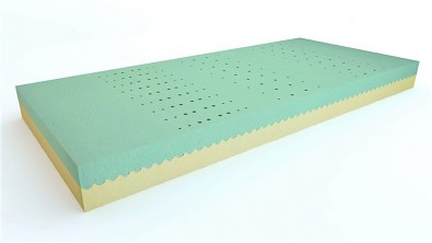 Měkká strana, perforovaná pěna s vysokou prodyšností a sedmizónovám profilováním. PUR pěna od Carpenter s hutotou 28 Kg/m³. --2