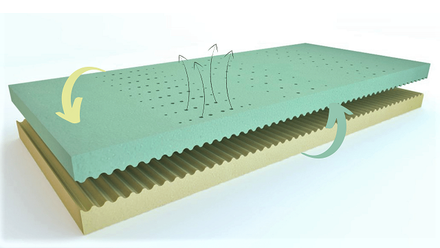 Technologie bez použití lepidel pro zvýšenou prodyšnost. Pěny jsou spojeny speciální vlnkou, která zabraňuje pohybu jednotlivých vrstev. --2