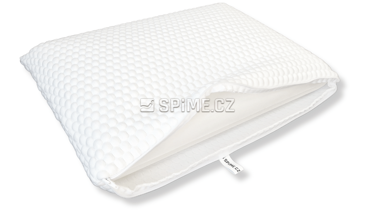 Snímatelný potah: Potah lze pomocí zipu rozepnout, sejmou z jádra a vyprat. Zip je u anatomických polštářů na spodní straně polštáře, uprostřed, po délce polštáře. U standardního tvaru je na našitý na bočním švu polštáře. Ano