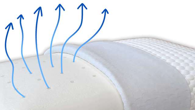 Perforace polštáře zajišťuje maximální prodyšnost a ventilaci. Polštář je perforovaný a díky této prodyšnosti odchází přebytečné teplo a vlkost od hlavy a krční páteře, nebudete se na něm zbytečně potit, ani přehřívat.