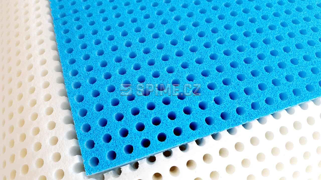 | Materiál: Složení materiálů, z kterých je jádro matrace vyrobeno. HR studená pěna: Oproti PUR je tvárnější, pružnější, trvanlivější a prodyšnější, díky struktuře otevřených pórů. VISCO: líná pěna s paměťovým efektem dokonale kopíruje konturu páteře a díky nízkému zpětnému tlaku je mimořádně komfortní a nevytváří tak proleženiny. LATEX: skvělá tvárnost a vysoká životnost díky vysoké hustotě pěny. Jediná 100% přírodní funkční matrace. | VISCO paměťová pěna + Chladivá část |