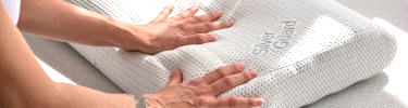 Skvěle tvarovaný anatomický polštář z perforované viscoelastické paměťové pěny. Dvě různé výšky stran zajišťují optimální oporu krční páteře.