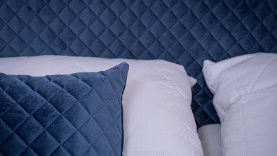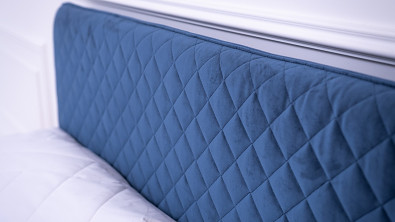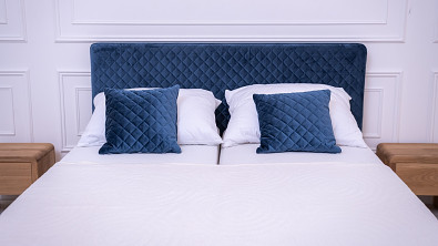 Designová postel z masivu AMARE s čalouněným hlavovým čelem, čalouněné unikátní látkou AquaClean. Masivní tvrdé dřevo buk o síle 4 cm s příplatkem dub apod. Kování Hettich s doživotní zárukou. Povrchová úprava 100% přírodní olejo-vosk od BIOFA. Výběr z více druhů barevného provedení oleje. Výška hlavového čela 110 cm.