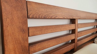 Postel z masivu GABRIELA buk s rovným, nebo ohýbaným hlavovým čelem. Bukové masivní tvrdé dřevo o síle 4 cm. Kování Hettich s doživotní zárukou. Povrchová úprava 100% přírodní olejo-vosk od BIOFA. Výběr z více druhů barevného provedení oleje. Hlavové čelo 90 cm, nebo s příplatkem 100 cm.