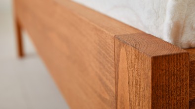 Postel GITA je opatřena přírodní povrchovou úpravou od německého výrobce BIOFA - směs přírodních olejů a pryskyřic s vysokým obsahem včelího vosku. Povrchová úprava je ručně nanášena ve více vrstvách, olej se do dřeva vsákne a vytvoří perfektní vrstvu, která chrání dřevo a je odolná vůči poškrábání. Případná lokální oprava olejovaného povrchu je velmi jednoduchá. Nevýhodou je pouze delší zrání povrchu. V základu bez příplatku je vždy transparentní povrchová úprava.