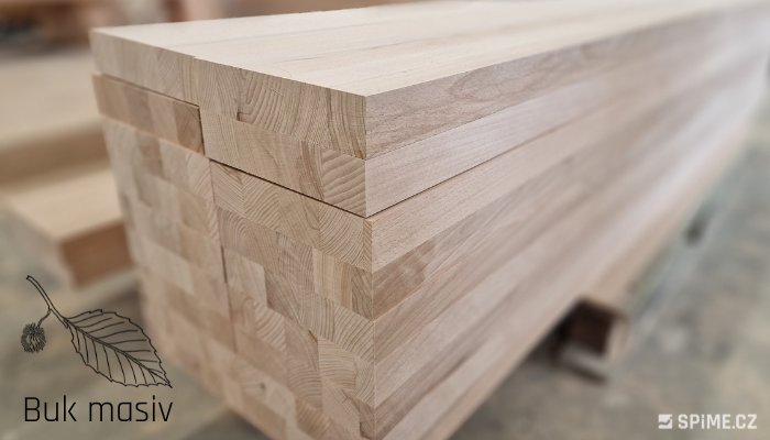 - Masivní bukové dřevo v kombinaci s masivní dýhou.