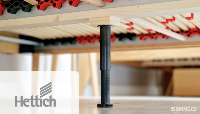 Uprostřed postele GITA naleznete středovou lať ze smrkového masivu s výškově nastavitelnou plastovou nohou od Hettich, která má nosnost až 450 kg. V základu je postel s jednou nohou, za příplatek si můžete zvolit středovou lať s 4x nohou, která je vhodná pro vyšší zatížení a hlavně v kombinaci s laťovými rošty bez bočního rámu.