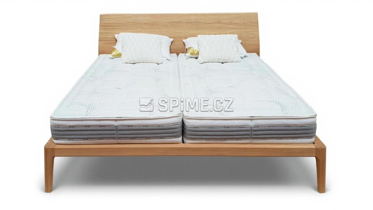Spojení bočnice a čela je provedeno postelovým kováním od Hettich. U středu postele z masivu drží rošty masivní středová lať s výškově nastavitelnou nohou latí pro dvoulůžko - manželské postele). Postel se skládá z bočnic, nožního čela, hlavového čela a středové latě. Výplň hlavového čela je tvořena kombinací masivu a masivní dýhy, tato kombinace zaručuje tvarovou stálost výplně. Systém závěsného kování umožňuje snadnou montáž i demontáž. Postel je opatřena přírodní povrchovou úpravou od Německého výrobce BIOFA - směs přírodních olejů a pryskyřic s vysokým obsahem včelího vosku. Provedení na foto Olej BIOFA Transparent přírodní odstín.