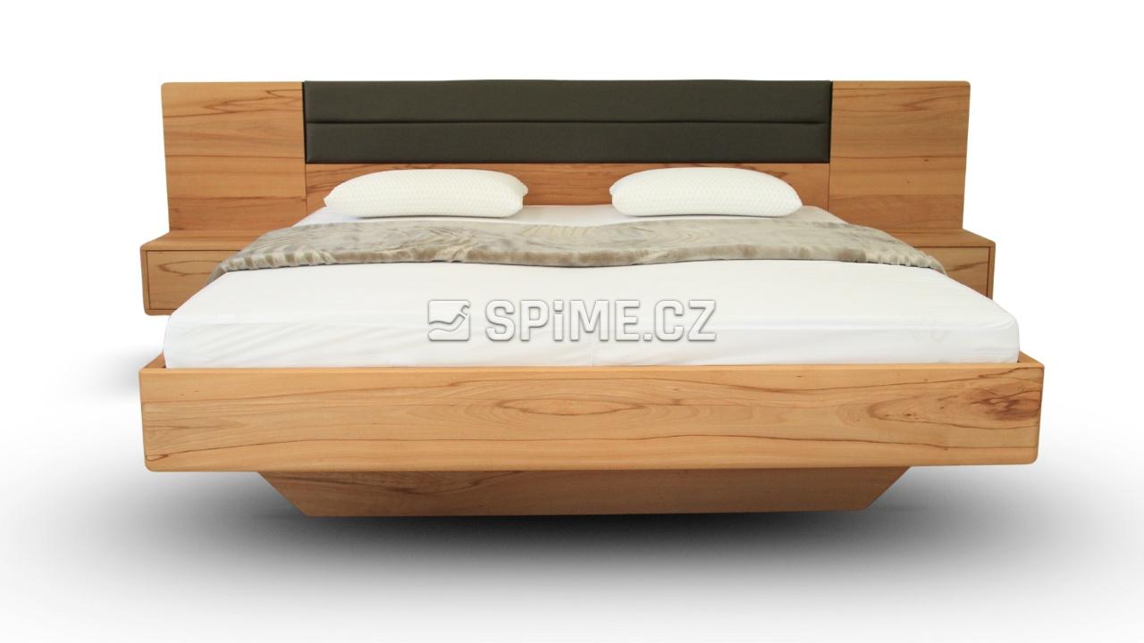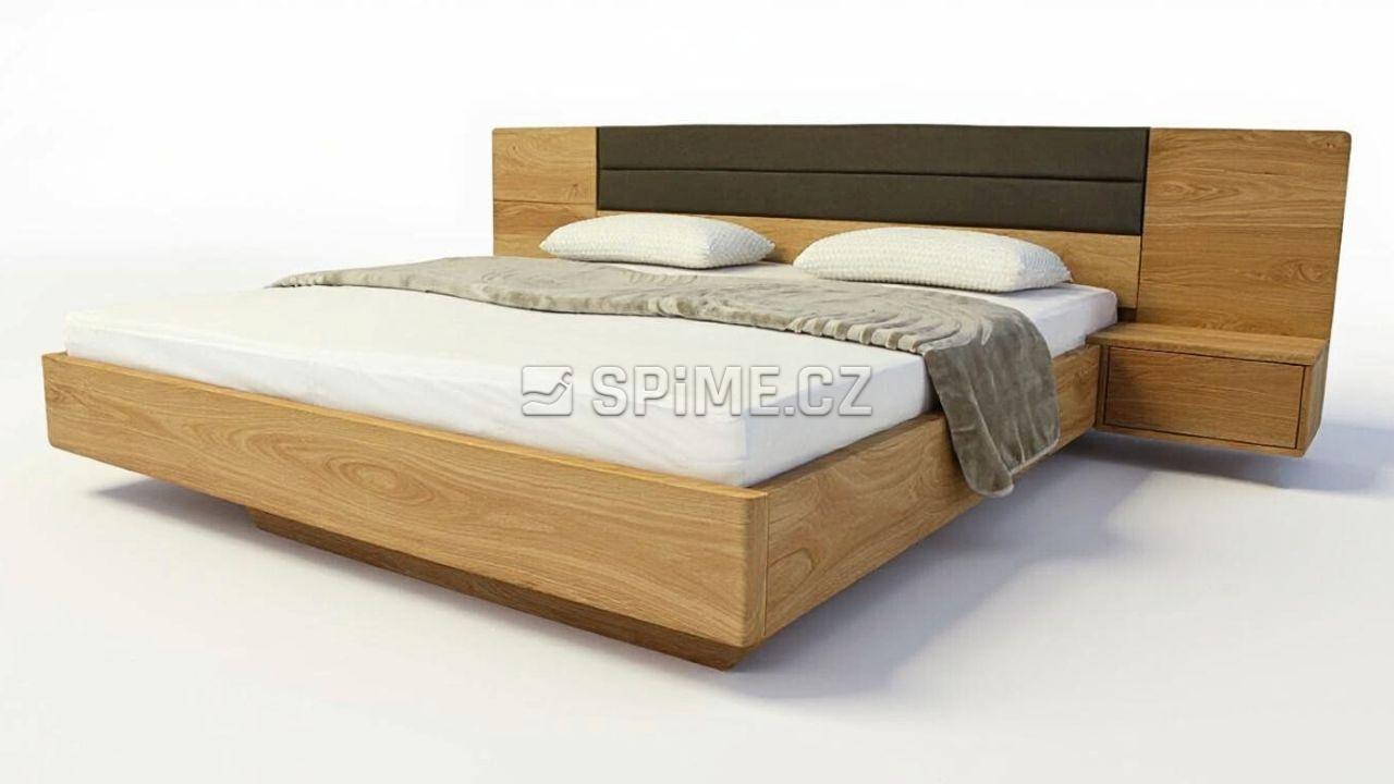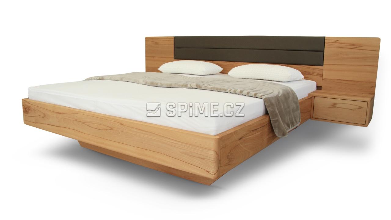 Postel z masivu LEVANTE dvoulůžko. Celomasivní dřevěná levitující postel o šíři masivu 2,8 cm s čalouněným čelem.