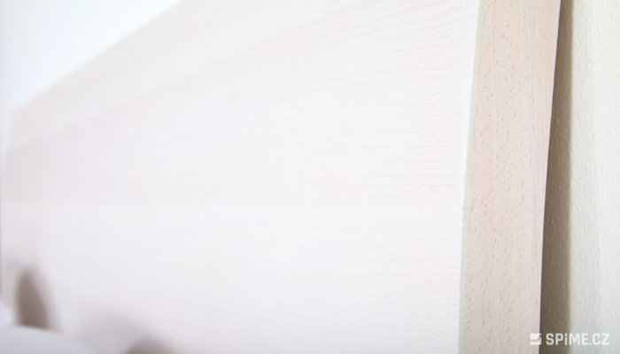 Hlavové čelo je vyrobeno z dřevěného rámu s opěrnými žebry z masivu, na kterém je deska z masivních plátů dýhy (překližka). V základní ceně je čelo rovné, za příplatek může být ohýbané, jako na obrázku.