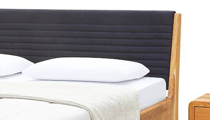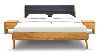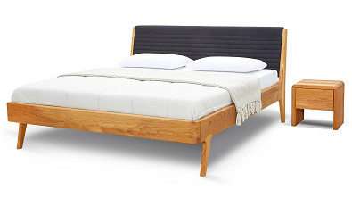 Postel z masivu DEIRA dvoulůžko. Celomasivní dřevěná postel o šíři masivu 4 cm s čalouněným čelem.