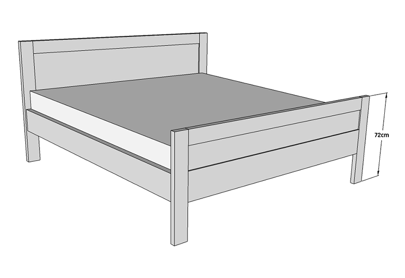 • Výška bočnice je 45 cm, výška sedu je cca 53-58 cm (záleží na výšce matrace a lamelového roštu).