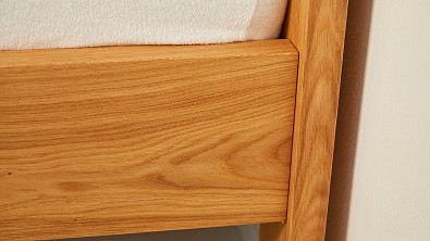 Postele z masivu ONTARIO DUB je naší nejprodávanější dubovou postelí, u které si můžete zvolit výšku hlavového čela a drásání. Přední hrany hlavového a nožního čela jsou zaoblené.