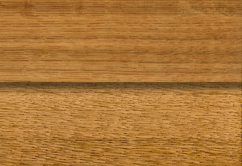 Dubové dřevo je nejkrásnější mezi listnatými dřevinami. Je vyhledávané pro svou tvrdost, pevnost, houževnatost a trvanlivost. Z našich dřev nejdéle vzdoruje nejen povětrnostním podmínkám, ale i střídání vlhka a sucha. Dub má poměrně úzkou, světlehnědou běl a široké, stejnoměrně hnědě zbarvené jádro. Na středovém a tečném řezu se objevují výrazná „zrcátka“ (přeříznuté dřeňové paprsky). Na výrobu používáme průběžnou lamelu, na délku je dřevo v jednom kuse, bez jakéhokoliv napojení. Původ bukového masivu je z České republiky, dřevo má certifikaci PEFC - výrobky z lesů obhospodařovaných trvale udržitelným způsobem.