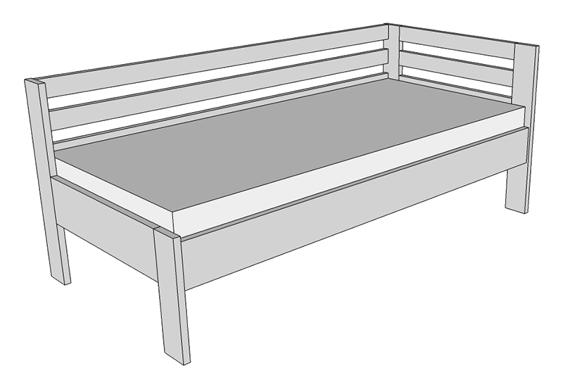 Postel je vyrobena z kvalitního masivního buku nebo dubu, které vynikají svou pevností a dlouhou životností. Díky celistvé boční straně je konstrukce ještě stabilnější a vhodná i pro ty, kteří preferují pocit uzavřenějšího prostoru při spánku. Spojení všech částí zajišťuje prvotřídní kování od značky Hettich, což umožňuje snadnou montáž i demontáž.