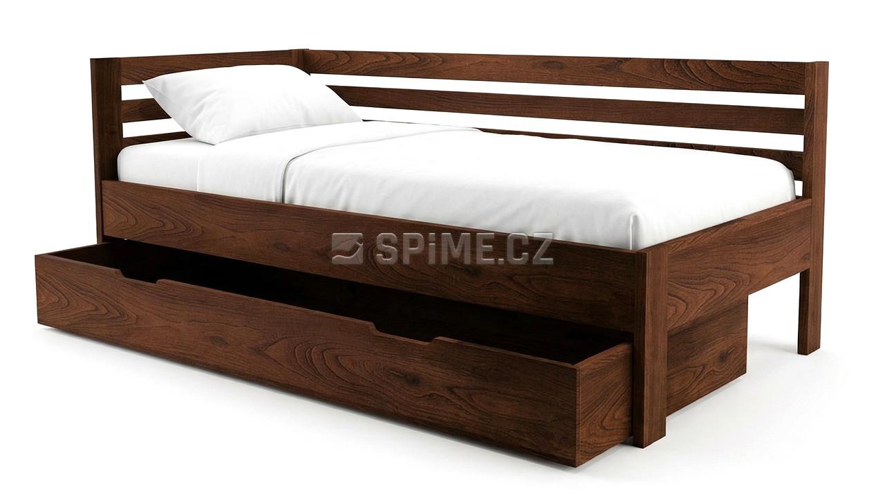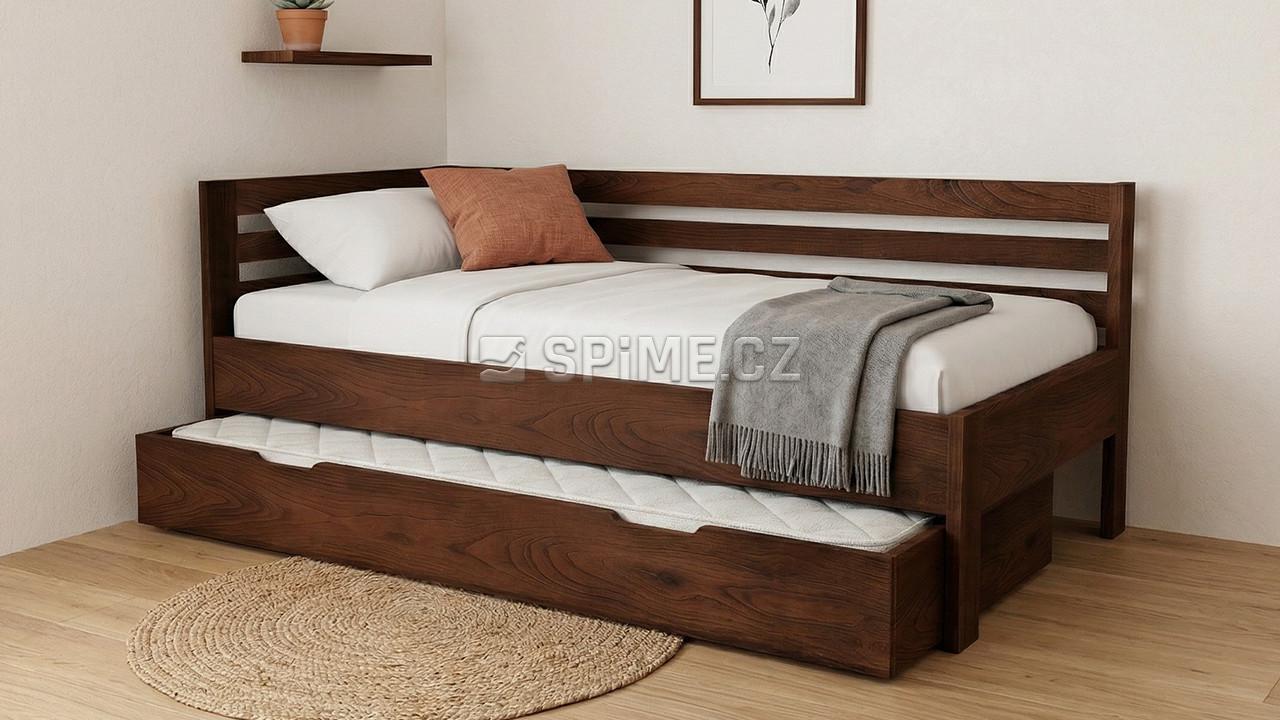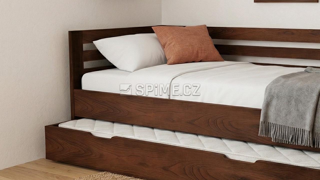 Postel z masivu SANY do L jednolůžko se zvýšenou boční stranou a s přistýlkou.