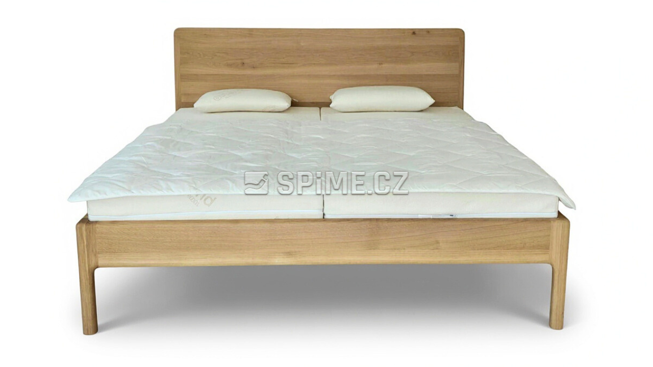Postel z masivu DEIRA dvoulůžko. Celomasivní dřevěná postel o šíři masivu 4 cm s čalouněným čelem.