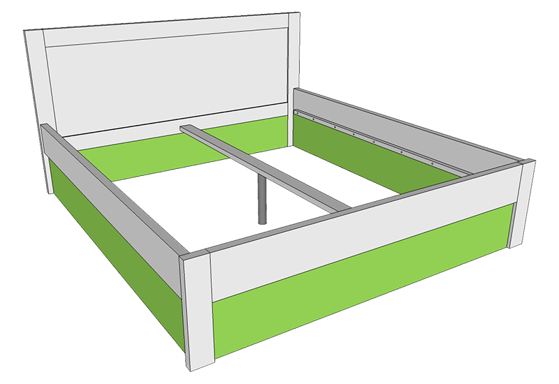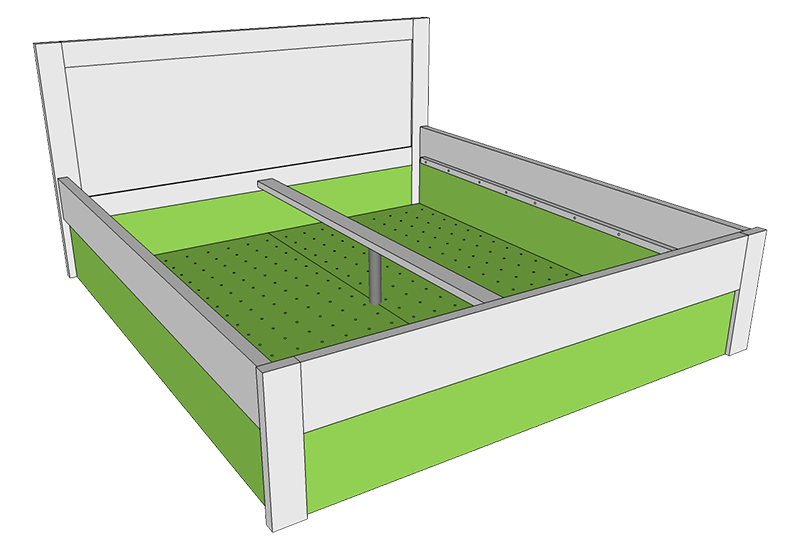 Spojení bočnic a čel je provedeno postelovým kováním od značkového výrobce Hettich. Uprostřed drží rošty masivní středová lať s výškově nastavitelnou nohou. Manželská postel se skládá z bočnic, nožního čela, hlavového čela a středové latě. Systém závěsného kování umožňuje snadnou montáž i demontáž. Provedení na foto Olej Transparent přírodní odstín.